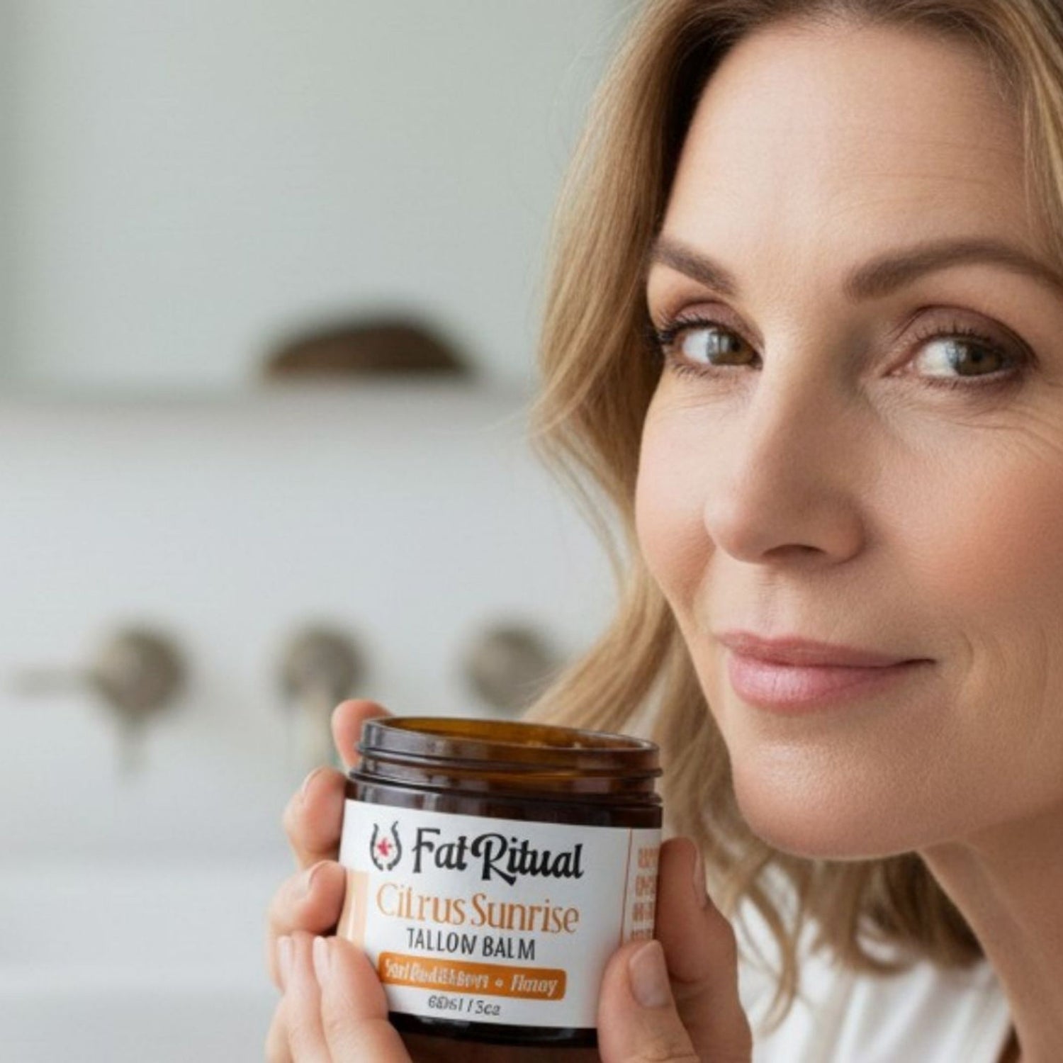 Grass-fed beef tallow is rich in vitamins A, D, E & K and naturally mimics your skin’s oils.